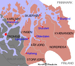 Kart som viser kåfjord, tromss plassering innen troms, laga av jon harald søby.